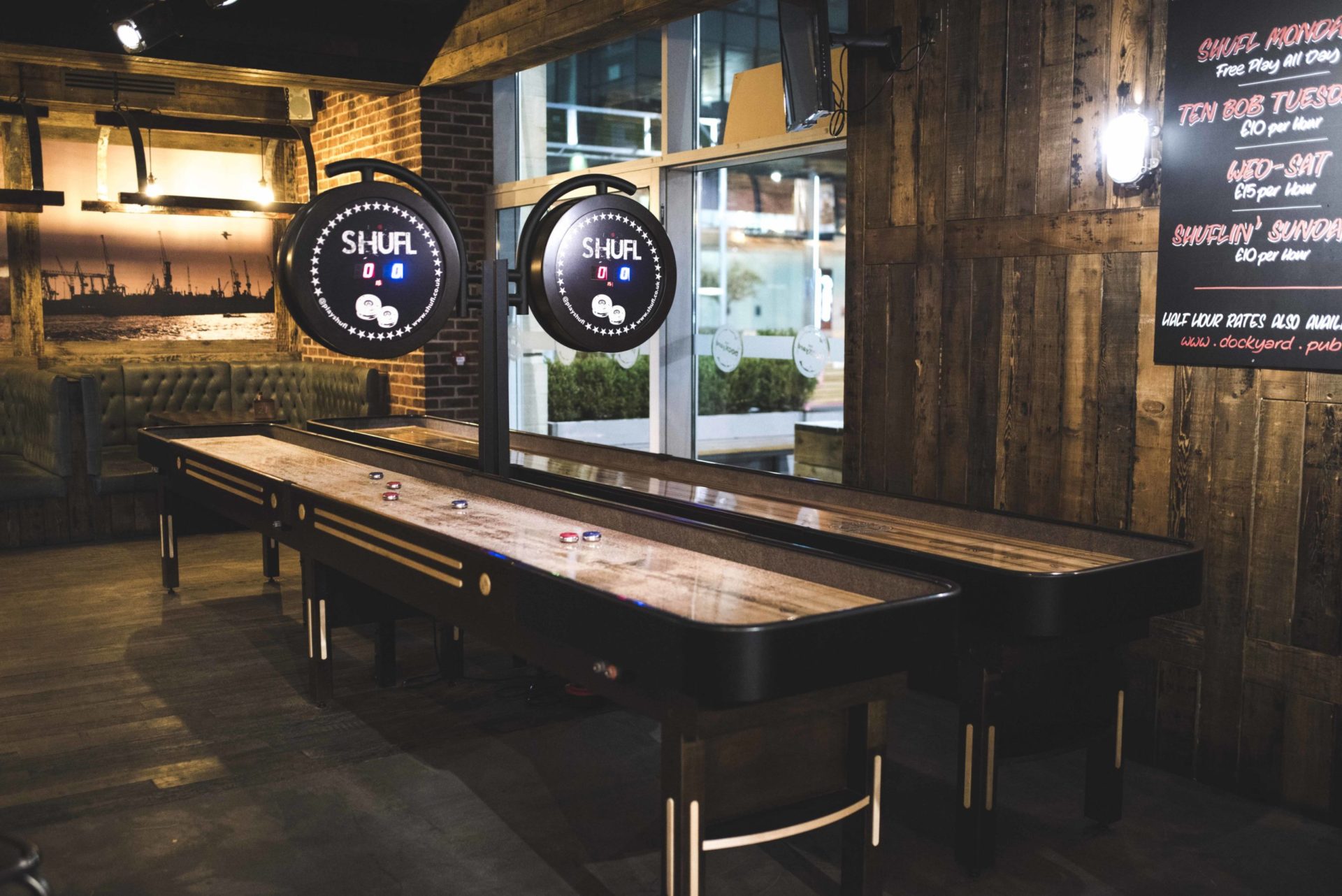Keep track of your score with our electronic score unit. Create a statement in your venue with a traditional wooden design that matches the tone of our shuffleboards with scoring visible on from both ends of the shuffleboard. Easy to use with simple button operation. The unit attaches to the centre leg of your shuffleboard and can be retro-fitted.